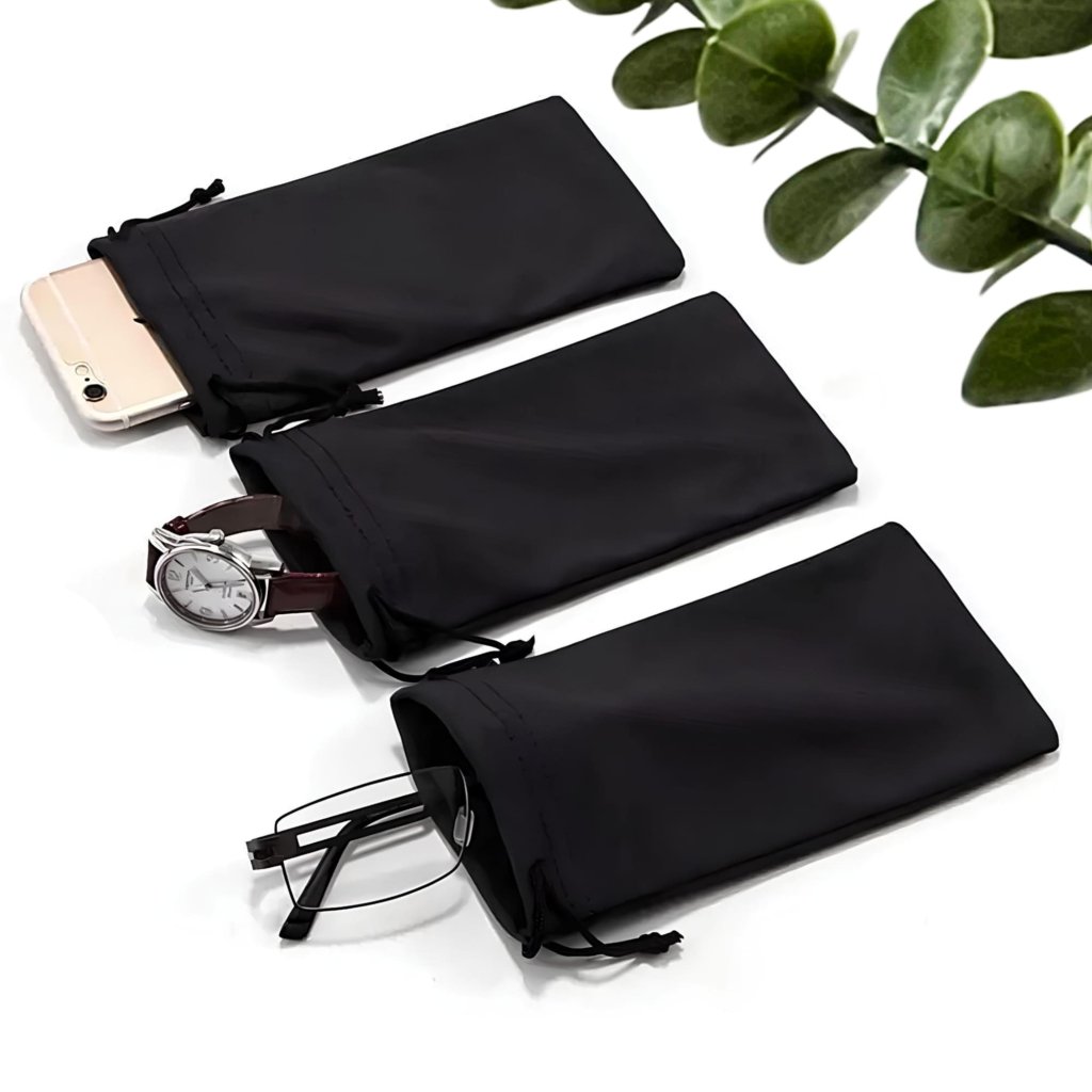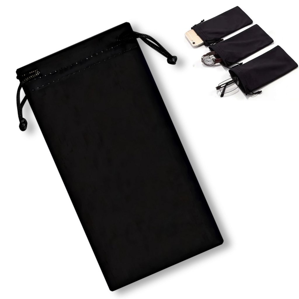 Stylový černý sáček s utahovací šňůrkou, který ochrání vaše brýle, hodinky, mobilní telefon a další drobnosti před poškrábáním či prachem. Vyroben z jemného, ale odolného materiálu, který je příjemný na dotek a zároveň spolehlivě chrání obsah. Díky univerzálním rozměrům (9 × 18 cm) se vejde do kabelky, batohu i kapsy.