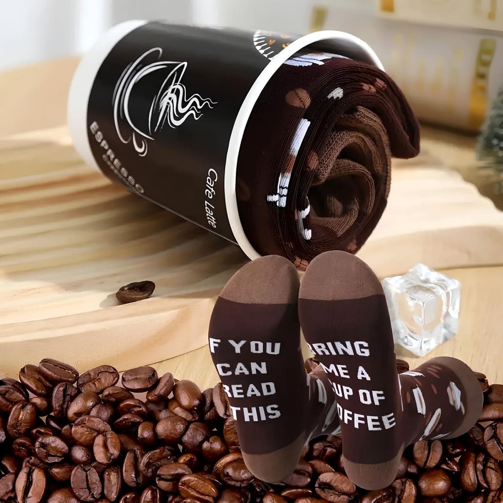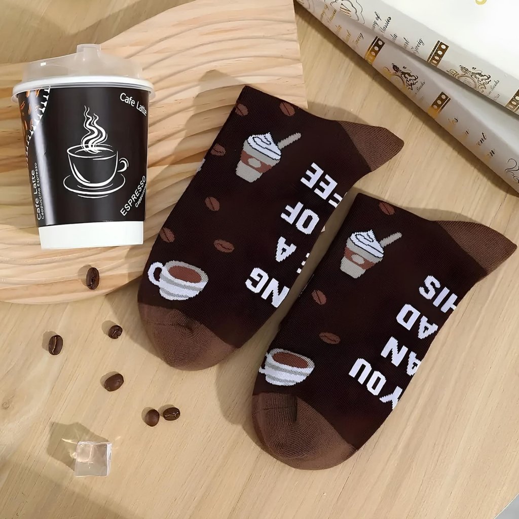 Tyhle ponožky jsou čistý kofeinový úlet. 🎉 Na první pohled kelímek latté, uvnitř ale hřejivá dávka stylu – ponožky s kávovým motivem. Ideální pro všechny, kteří nevstanou z postele bez hrnku kávy, a taky pro ty, co rádi rozdávají originální dárky.