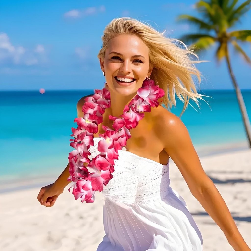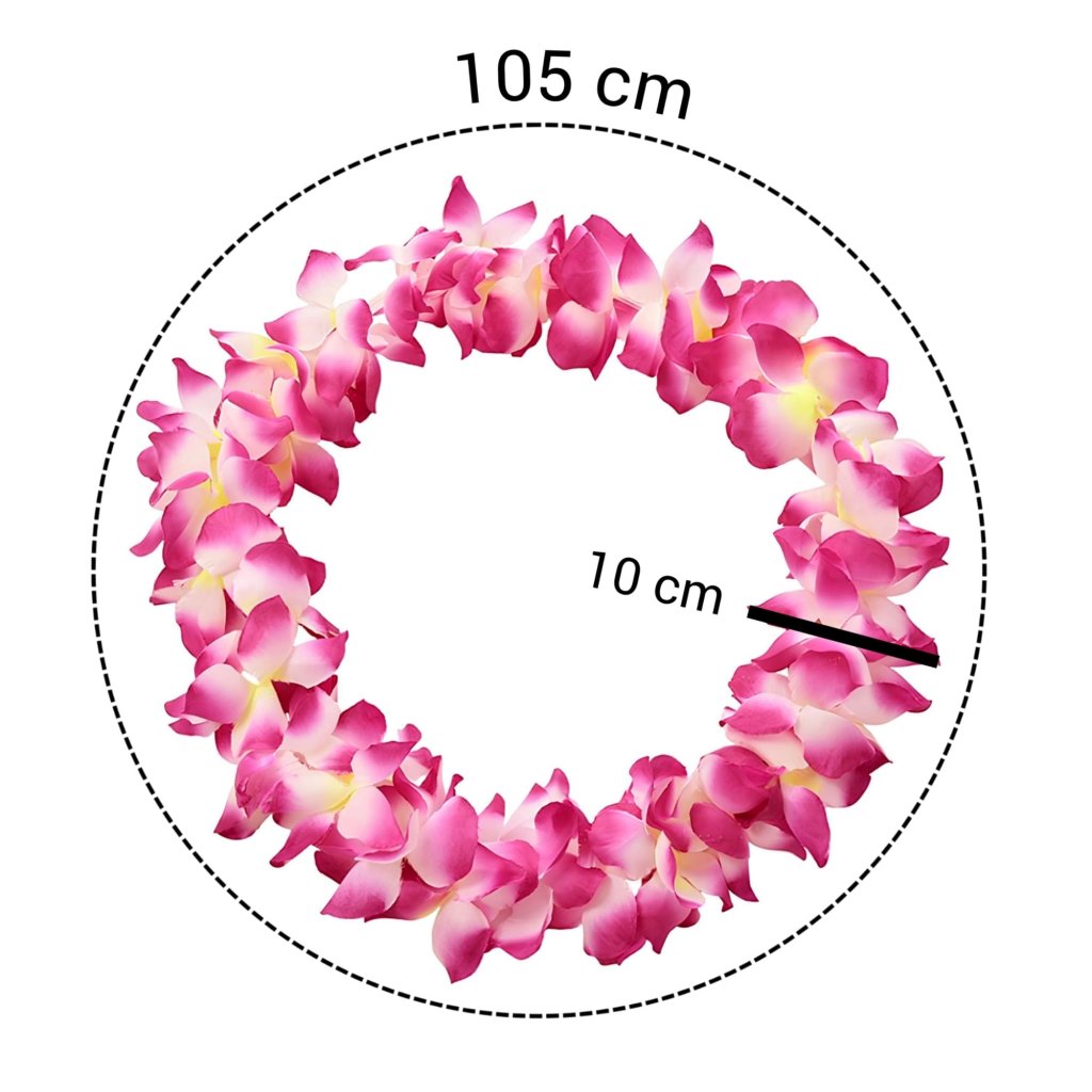 Zažijte kousek Havaje přímo u vás doma! 🌺 Tento havajský květinový věnec je dlouhý 105 cm a vyrobený z jemných textilních květů v elegantní růžovo-bílé kombinaci. Díky realistickému vzhledu působí velmi luxusně a dokonale doplní váš outfit.