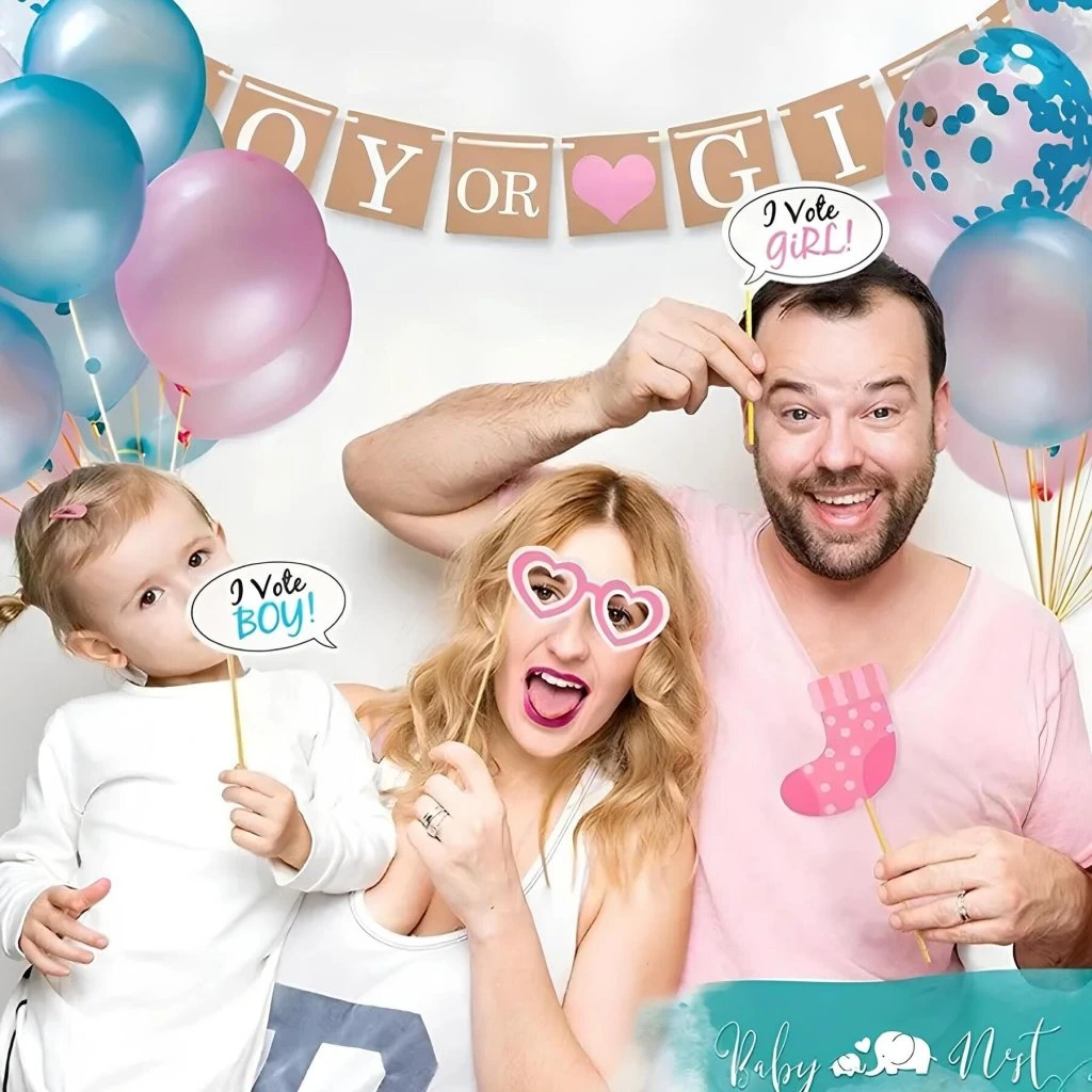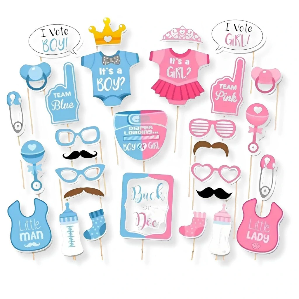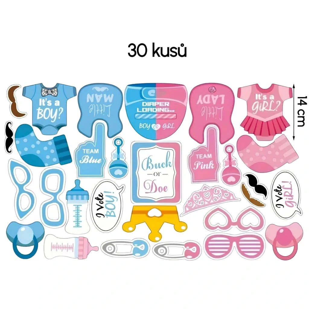 Sada 30 rekvizit do fotokoutku promění Baby Shower nebo Gender Reveal v zážitek, na který nikdo nezapomene.
