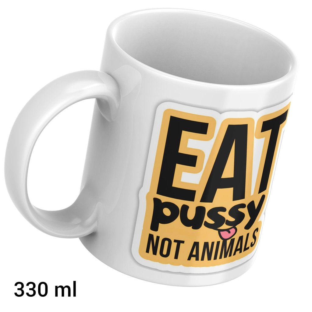 Hrnek s nápisem „EAT PUSSY, NOT ANIMALS“ je vtipný, drzý a absolutně nepřehlédnutelný. Ať už si do něj naleješ kafe, čaj nebo ranní existenciální krizi, jedno je jisté – nikdo ho nepřehlédne.