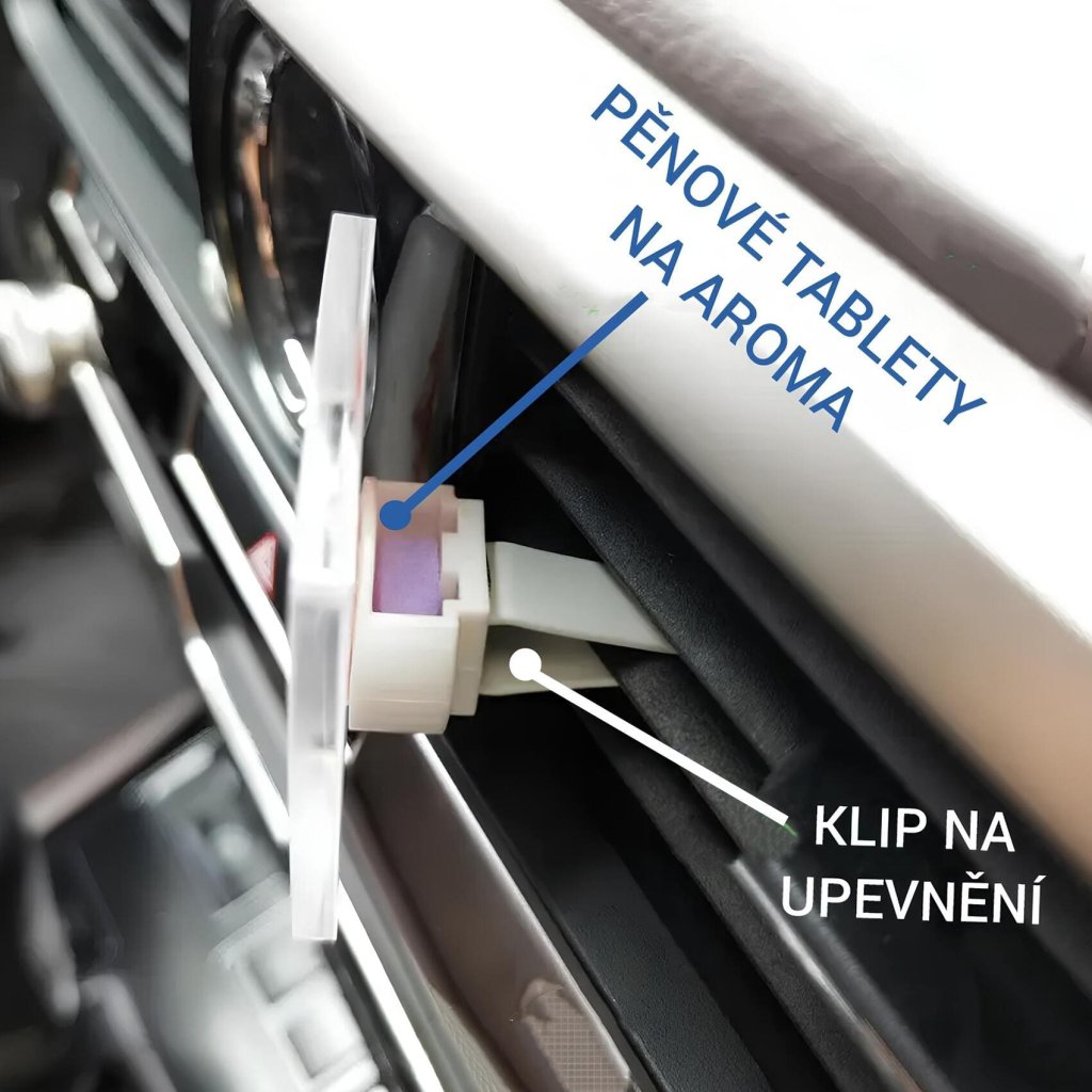Technický popis: Vůni si volíte sami – nebo žádnou. Součástí klipu jsou pěnové tablety, které slouží jako nosič vůně. Stačí je jemně napustit vaší oblíbenou esencí – nebo klip používat zcela bez vůně jako čistý designový doplněk.