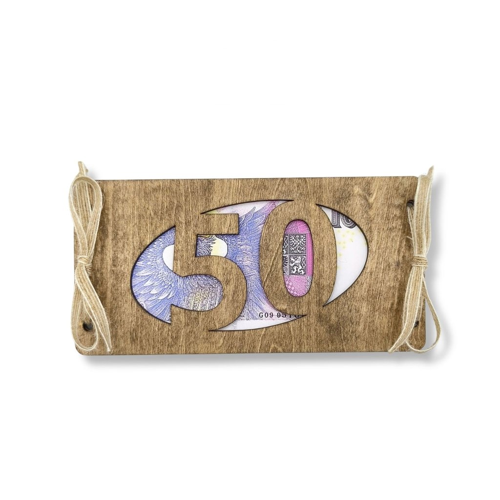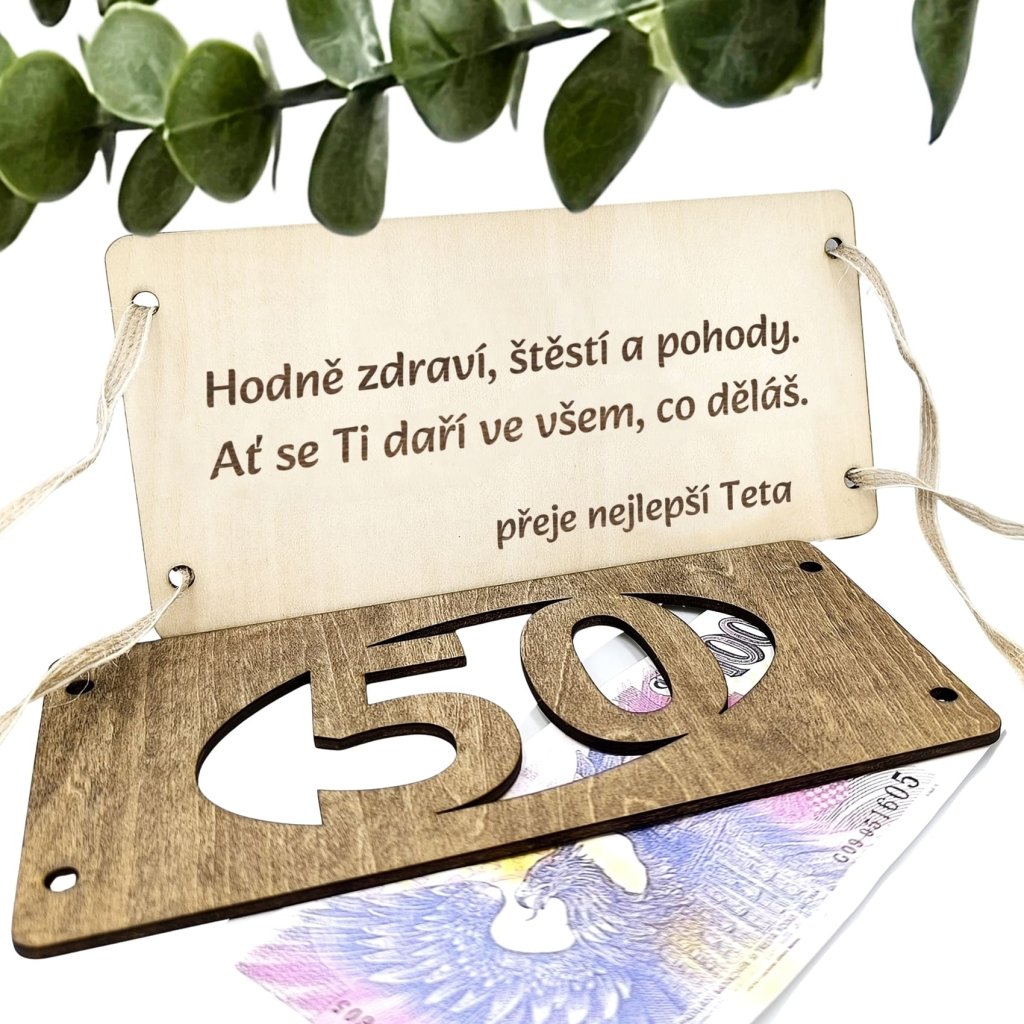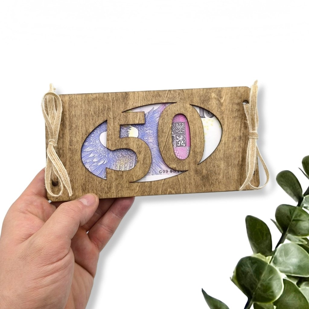 Tohle dřevěné přání je přesně ono. Mezi obě části vložíte bankovku – oslavencův věk prosvítá skrz jako důkaz, že letos fakt nešetříte.