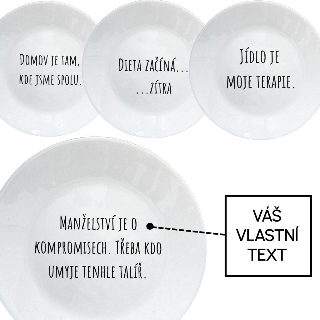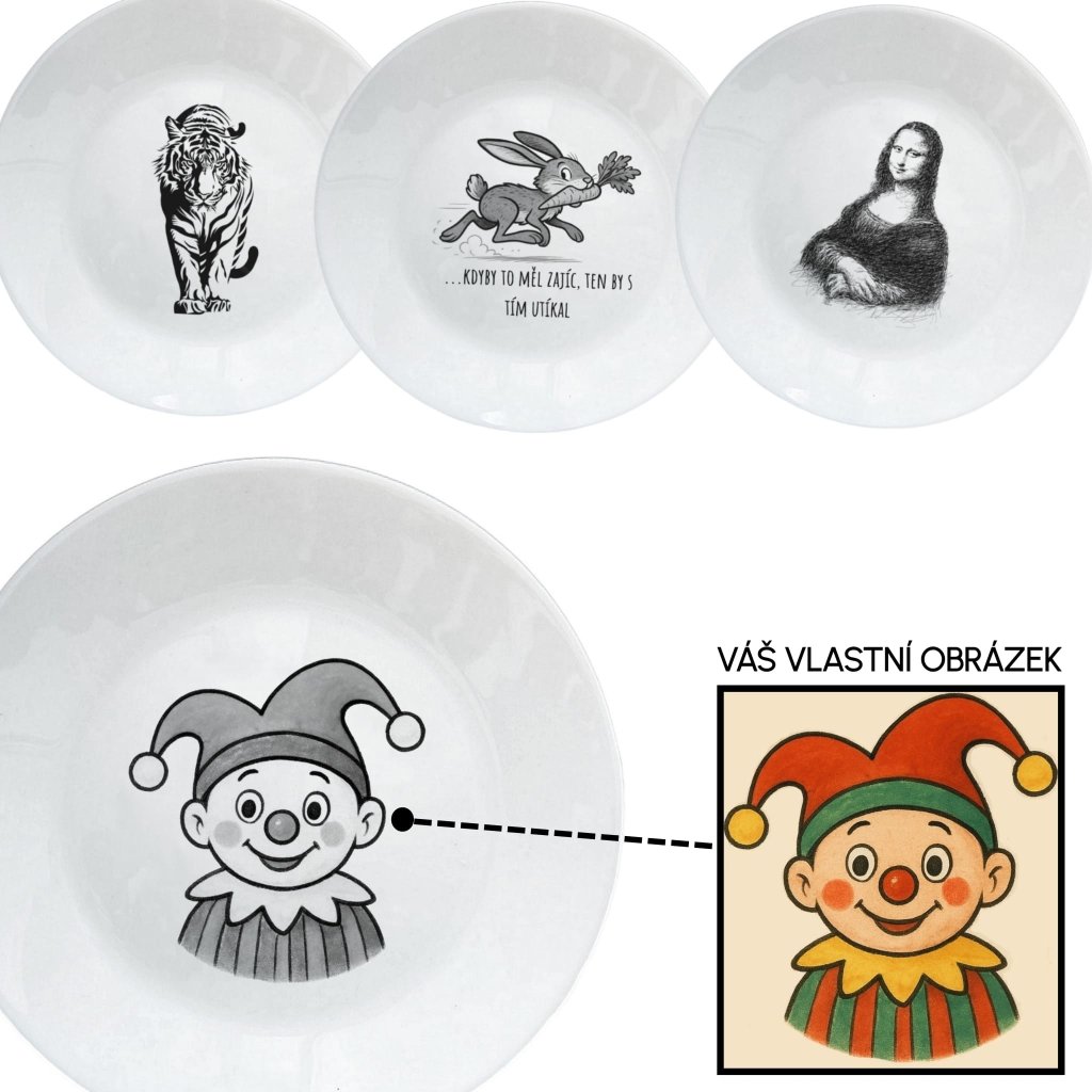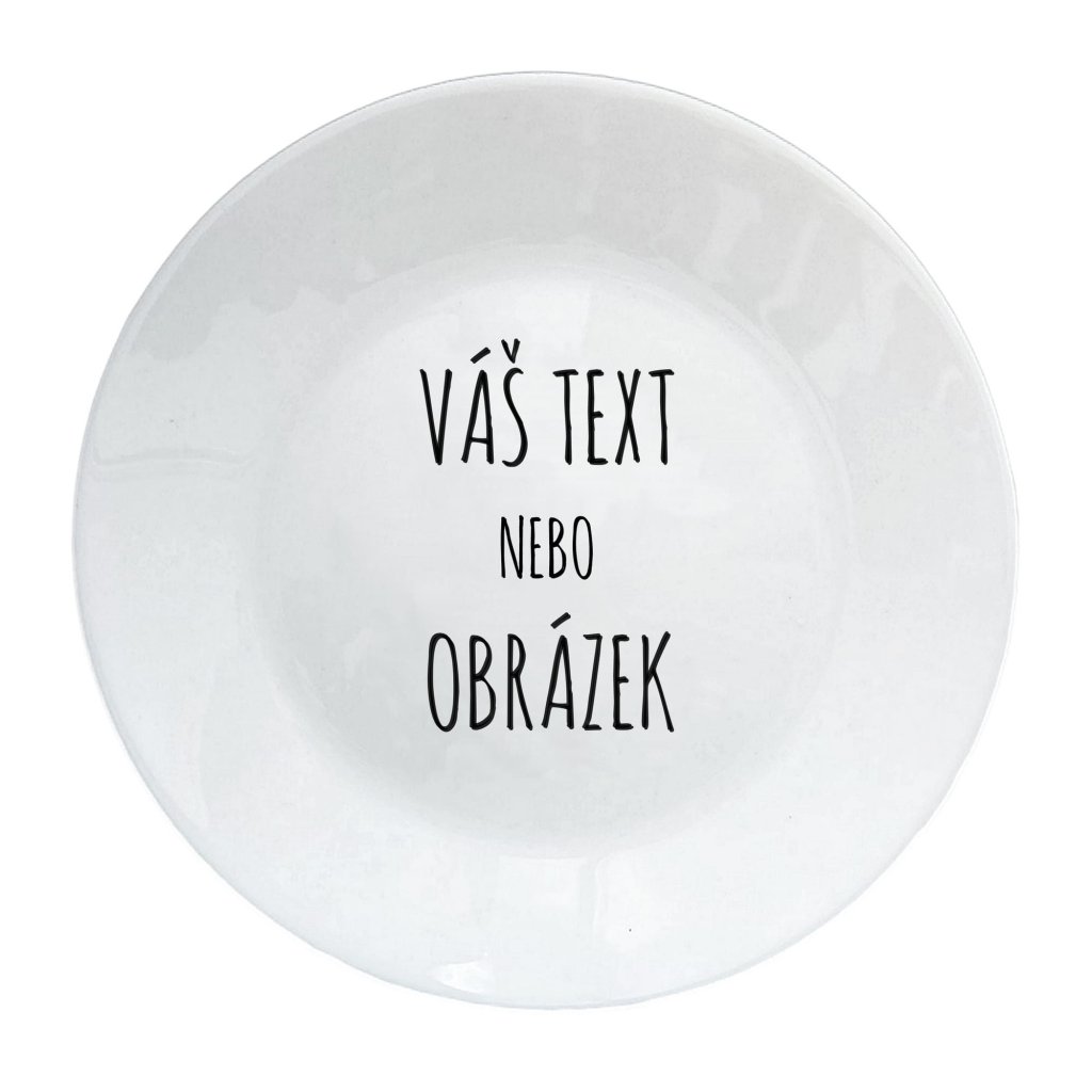 Tenhle talíř vzniká až ve chvíli, kdy si ho objednáte. Přidáme váš text, logo, nebo obrázek a vytvoříme osobní kousek, který má smysl.