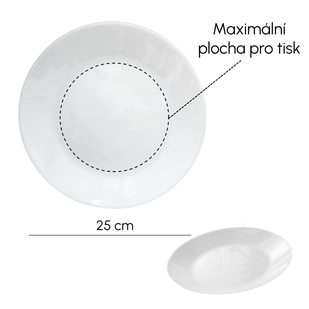 Motiv vždy umisťujeme do středové části talíře (viz maximální plocha pro tisk). Pokud kombinujete text a obrázek, postaráme se o kompozici tak, aby výsledek vypadal co nejlépe.