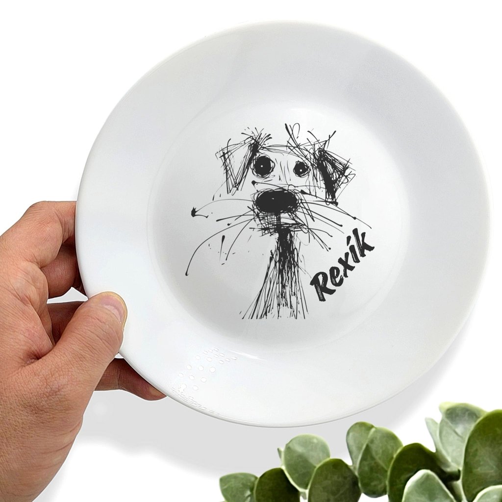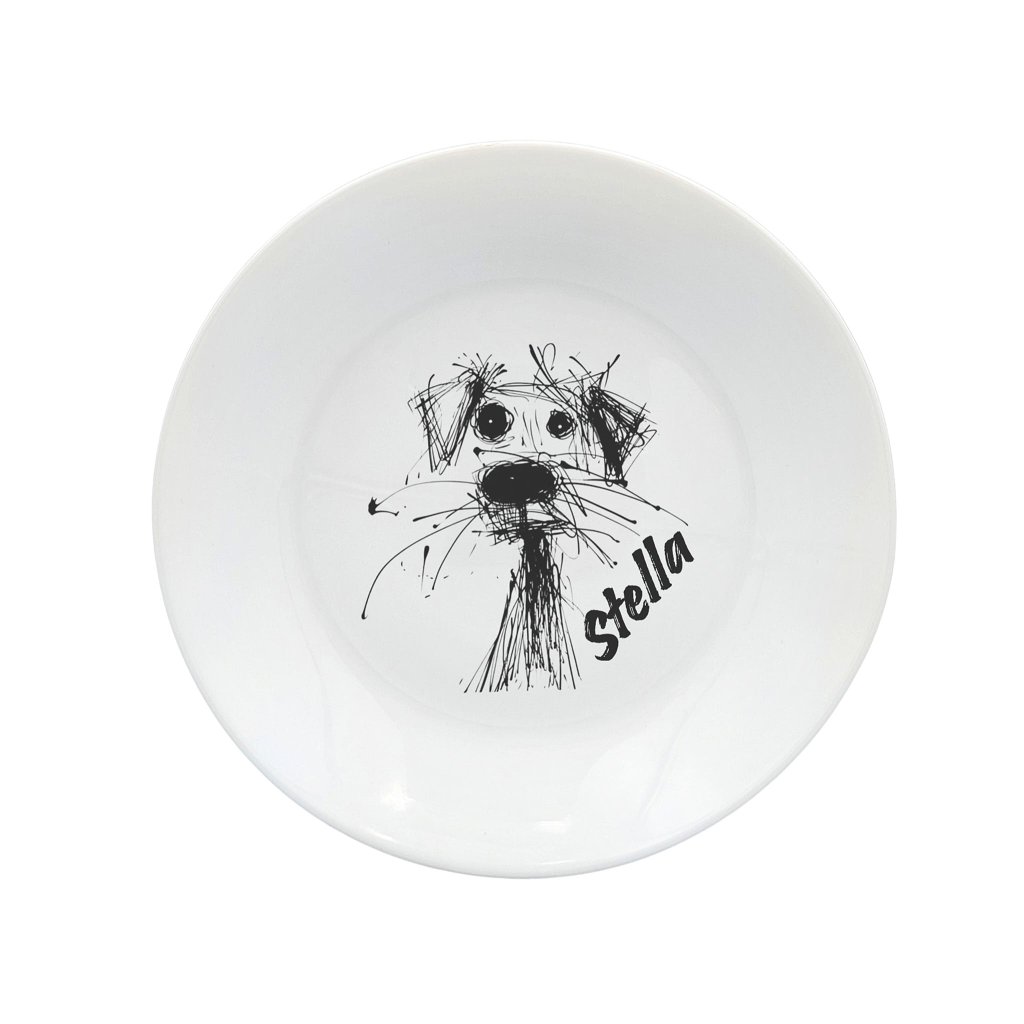 Na porcelán jsme vypálili stylového čmáraného pejska a k němu přidáme vaše vlastní jméno nebo jméno vašeho mazlíka.