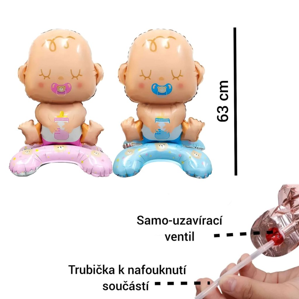 🎉 Hodí se na baby shower, gender reveal party, oslavu narození nebo křtiny. Díky samo-uzavíracímu ventilu je nafouknutí snadné a zvládne ho každý – stačí použít přiloženou trubičku.