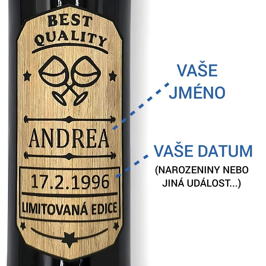 ✅ Napište text do poznámky. Etiketu s vaším vlastním textem rovnou nalepíme na lahev, takže se o nic nemusíte starat. Stačí napsat text a my se postaráme o zbytek.