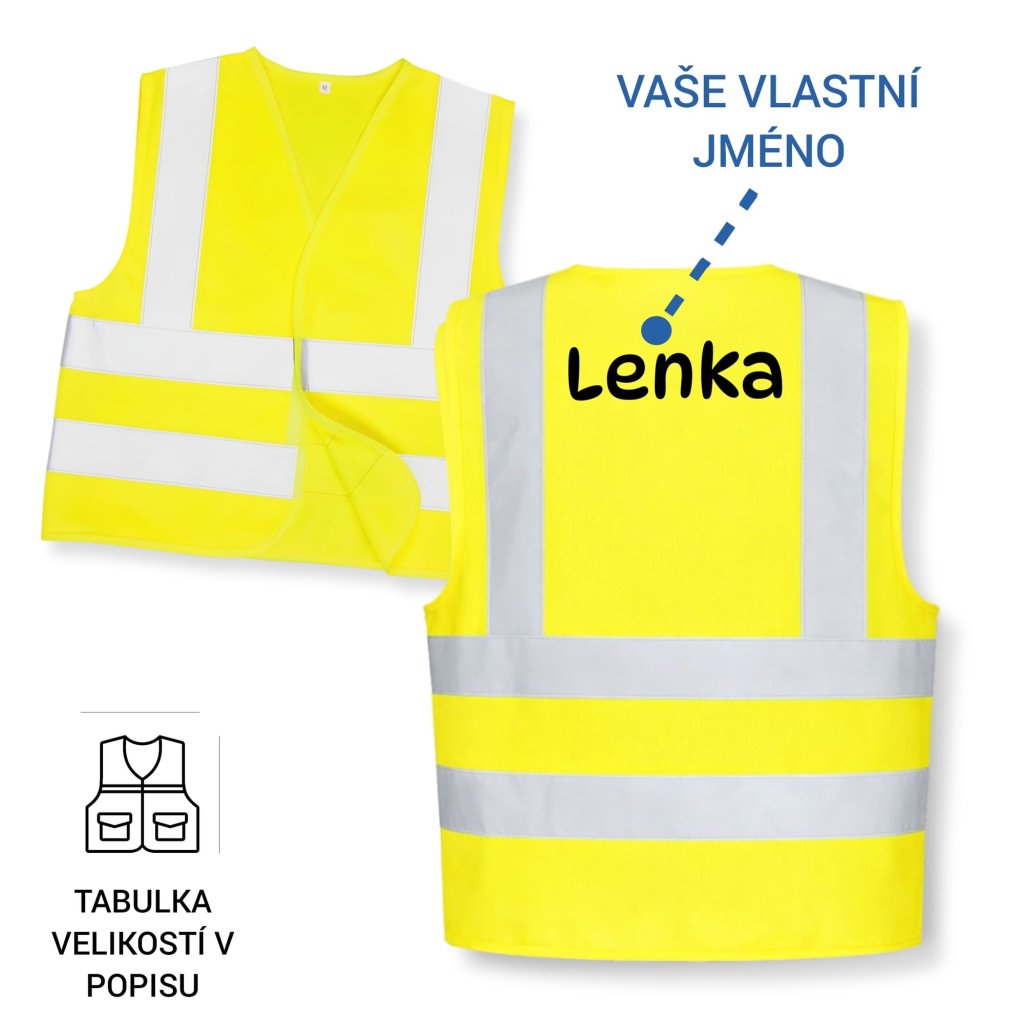 Tahle reflexní vesta není jen obyčejná „žlutá plachta“ – je to osobní ochranný doplněk, který dává jasně najevo, komu patří. Přidáme jméno a rázem máte vestu, kterou si nikdo nesplete.