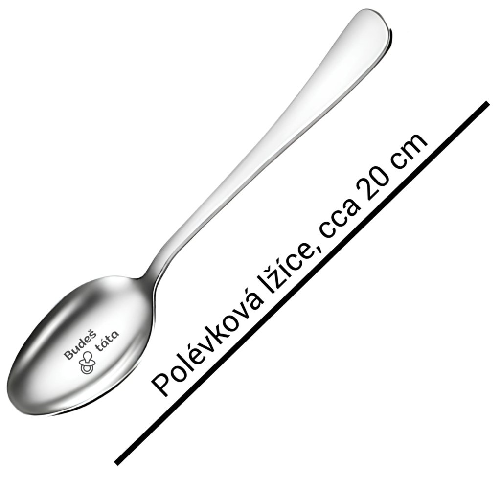 Naše polévková lžíce z nerezové oceli s gravírováním „Budeš táta“ je dokonalým dárkem pro budoucího tatínka. Místo obyčejných slov přichází překvapení, které čeká přímo na talíři. 🍲