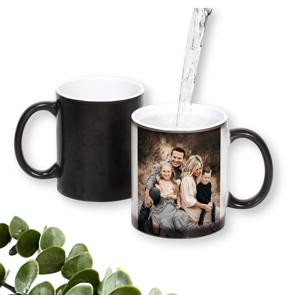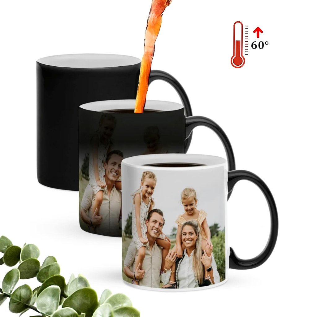 Z obyčejného hrnku se během pár vteřin stane originální překvápko! Nalijte dovnitř horkou kávu nebo čaj a sledujte, jak se černý povrch hrnku promění a odhalí Vaši fotku.