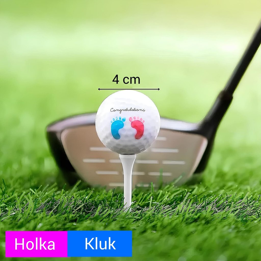 ✅ JAK TO FUNGUJE: V sadě jsou dva míčky, každý je označený nálepkou, modrá a růžová. Vyberete míček dle pohlaví, sloupnete nálepku. Umístíte na golfový tee a už jen odpalujete.