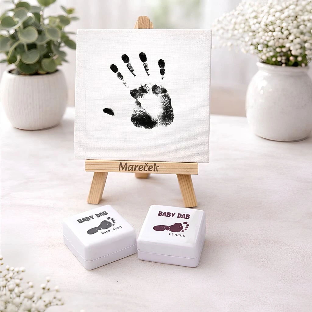 - ✓ Bezpečné inkoustové polštářky BABYDAB součástí balení - lze omýt pouze vodou