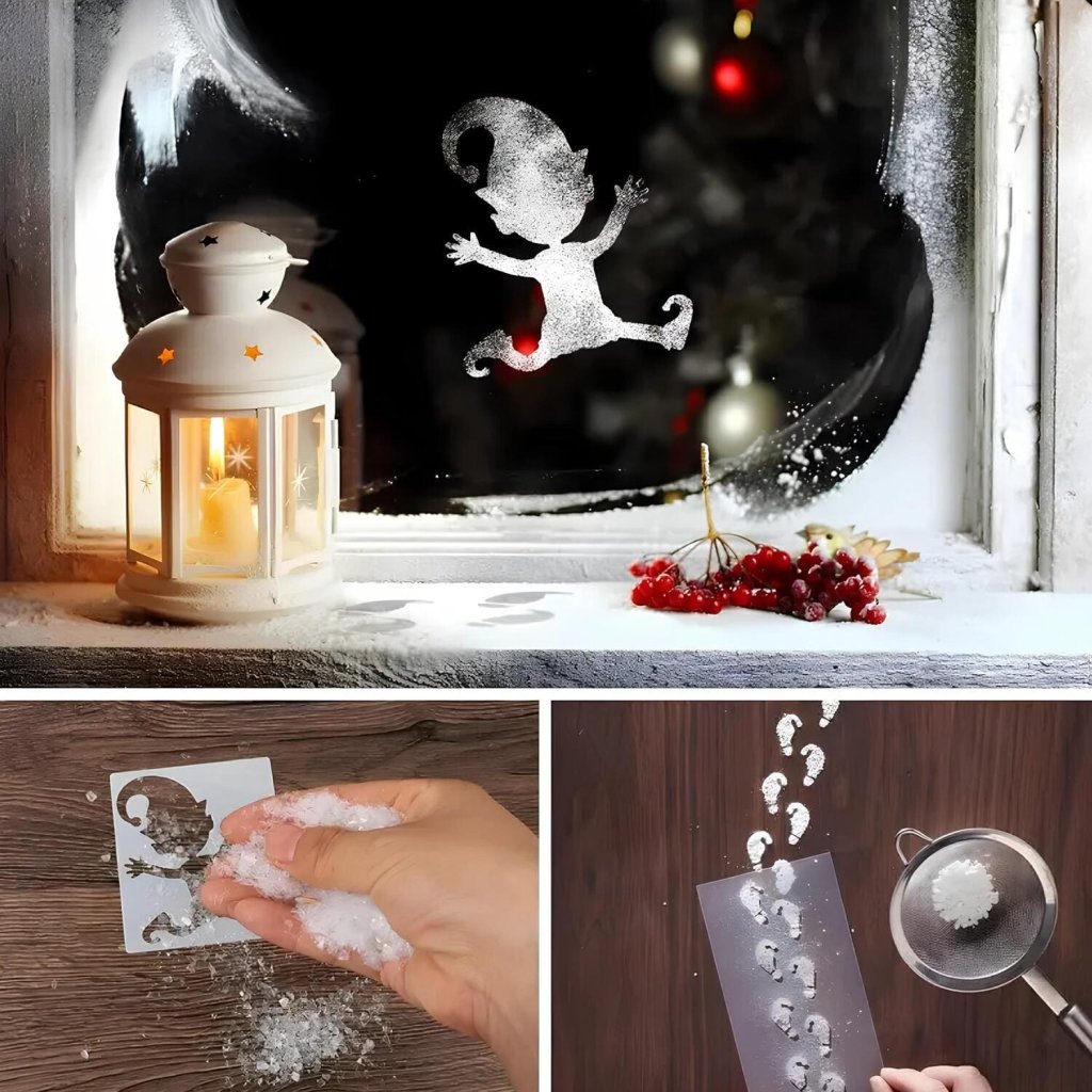 S těmito vánočními šablonami vytvoříte iluzi, že u vás přes noc řádil malý skřítek. Stačí trocha mouky, třpytu nebo umělého sněhu – a kouzlo je hotové!
