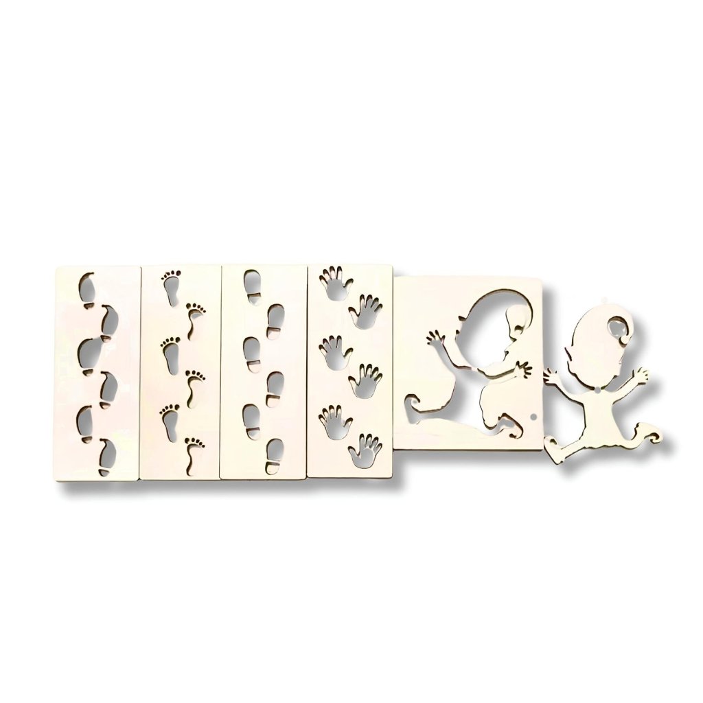 ✅ 6 šablon v sadě – ručičky, nožičky i postavičky skřítků
