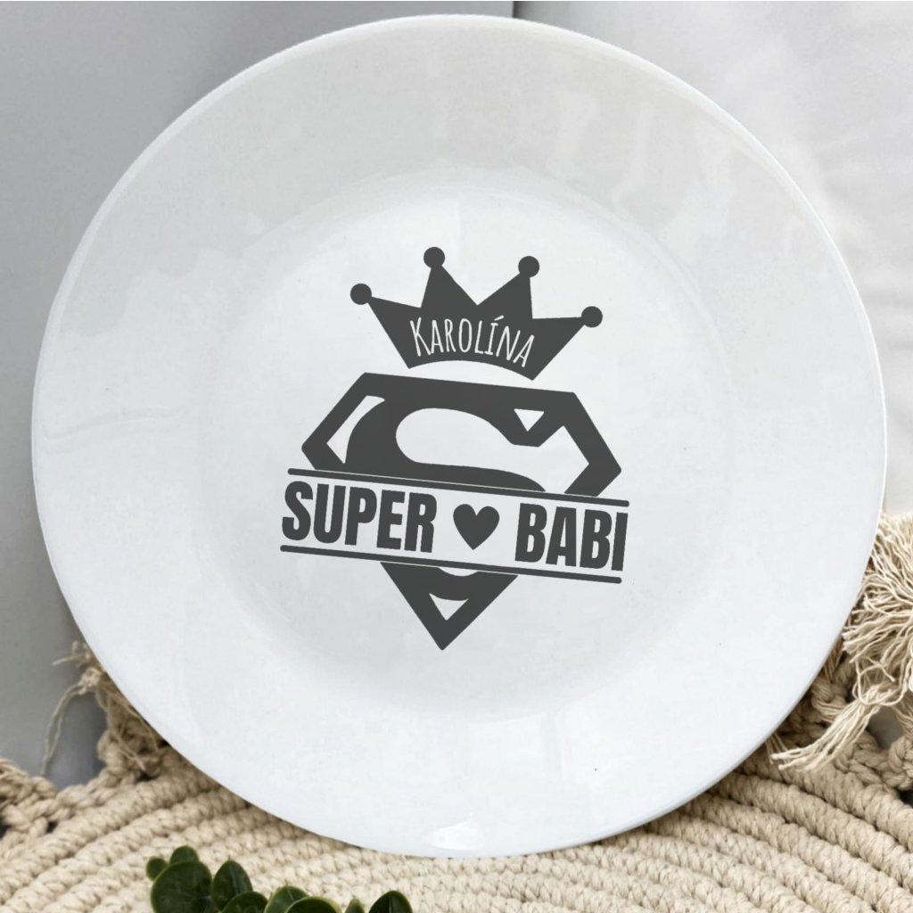 Talíř „Super Babi“ s vlastním jménem