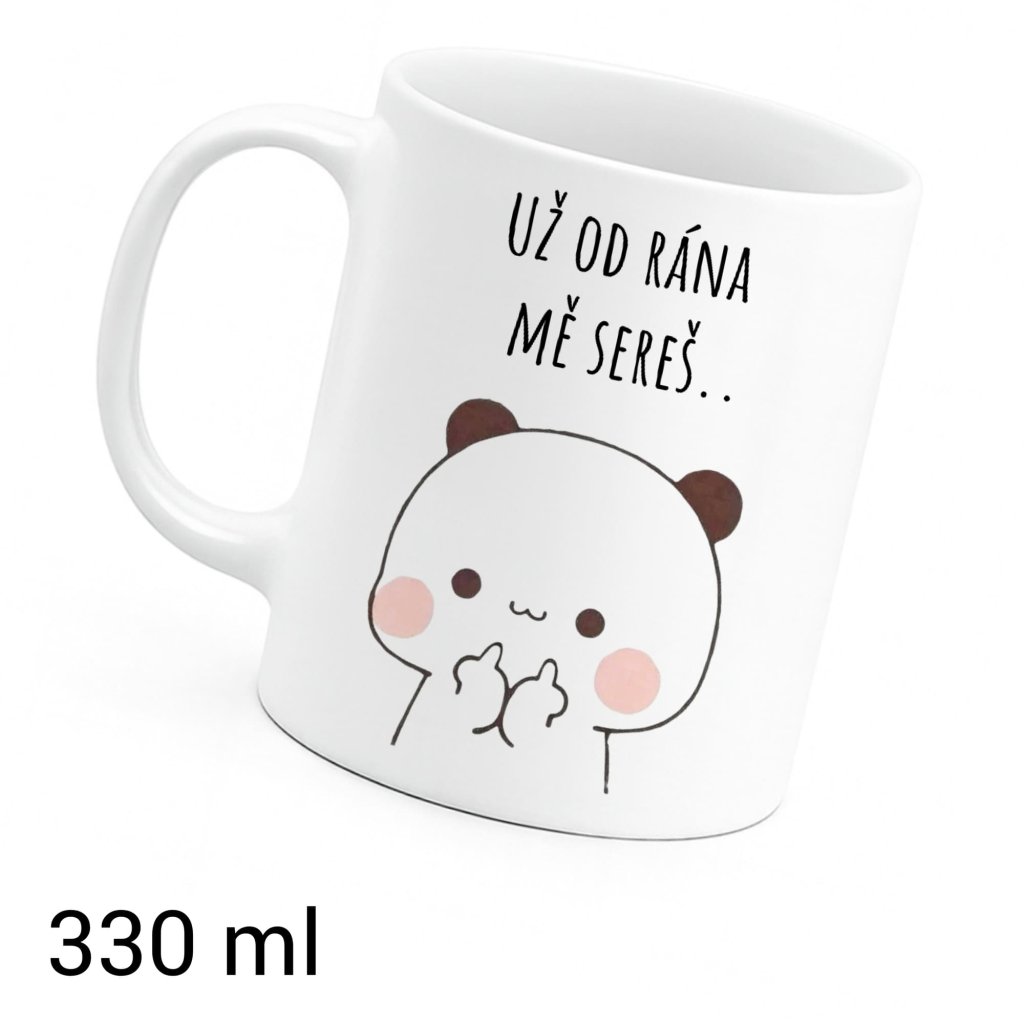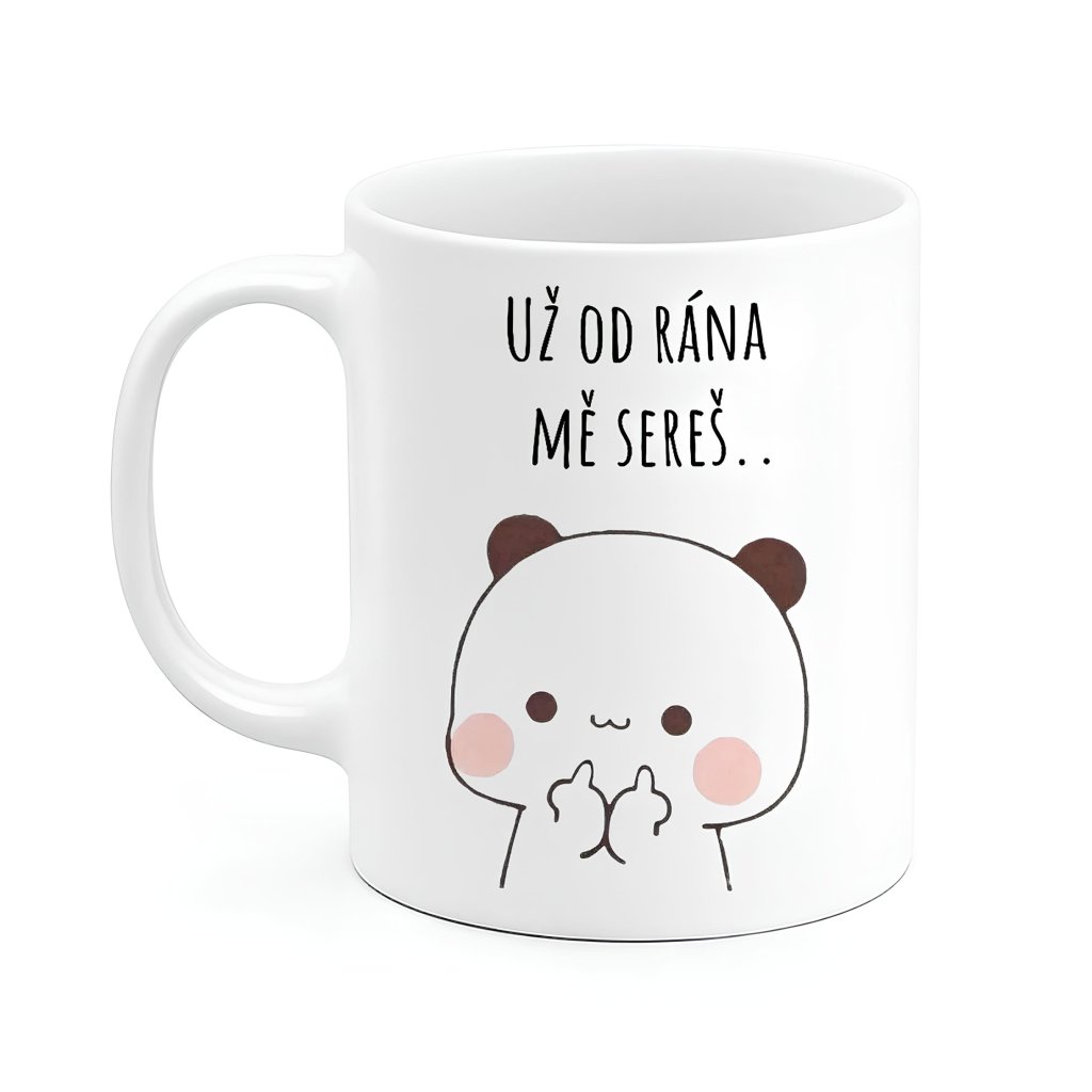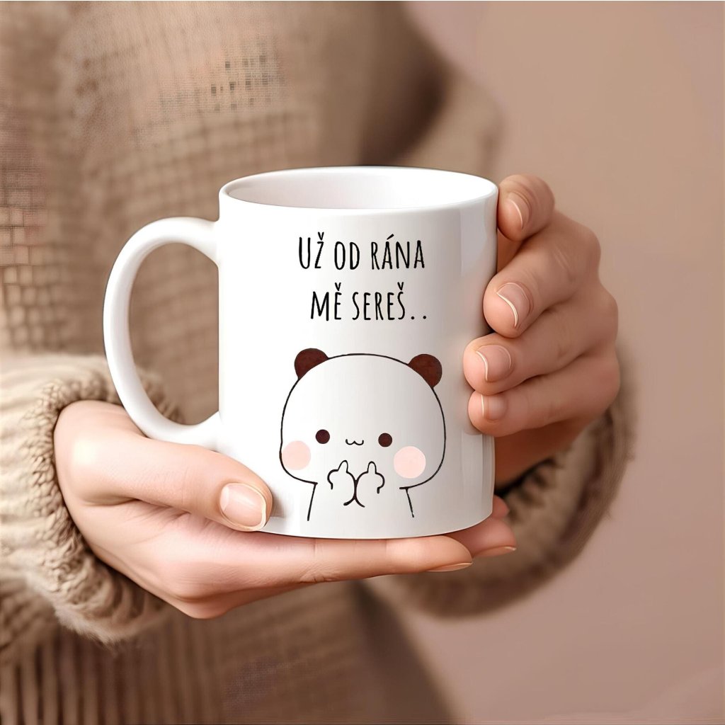 Ranní káva je základ, bez ní to prostě nejde. A když vás někdo dokáže nasrat hned po probuzení, je potřeba to dát jasně najevo. Tenhle vtipný hrnek s pandou a textem „Už od rána mě sereš..“ to zvládne za vás – stačí ho jen postavit na stůl.