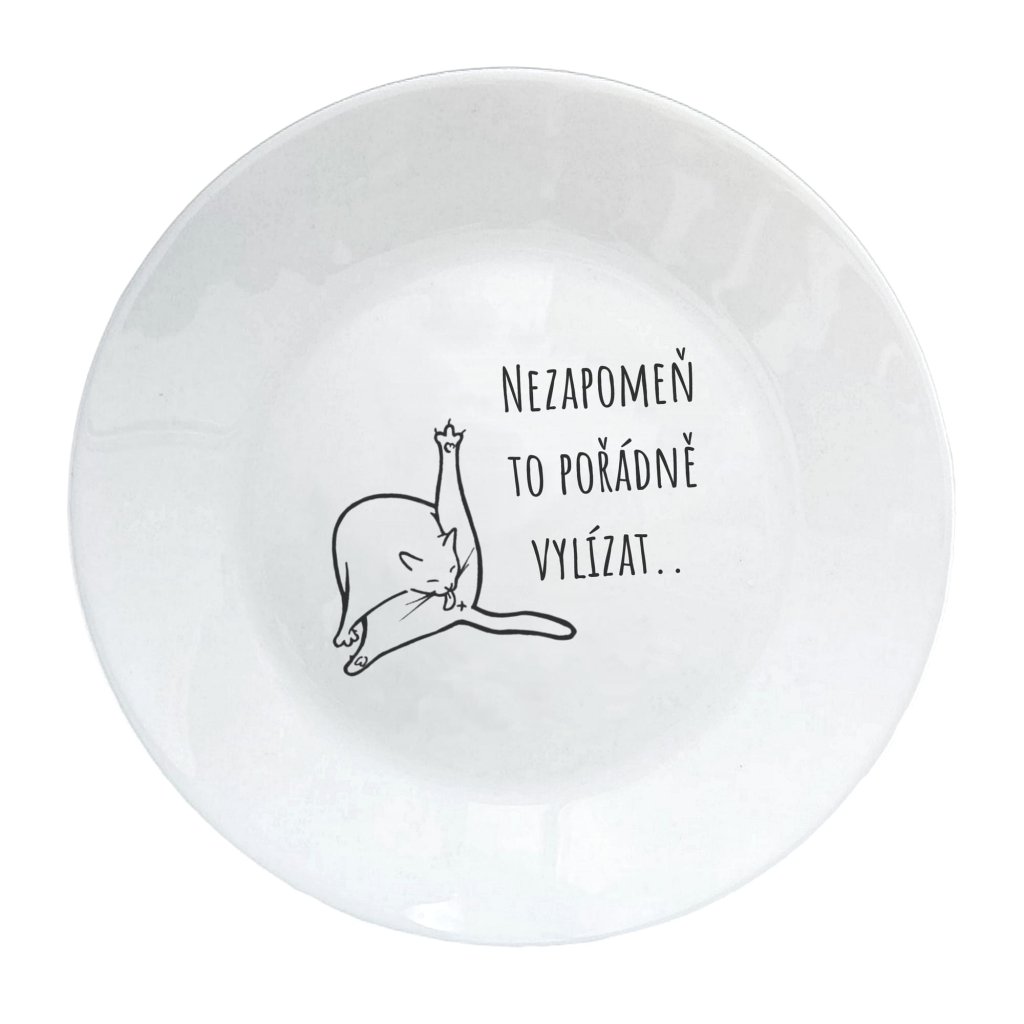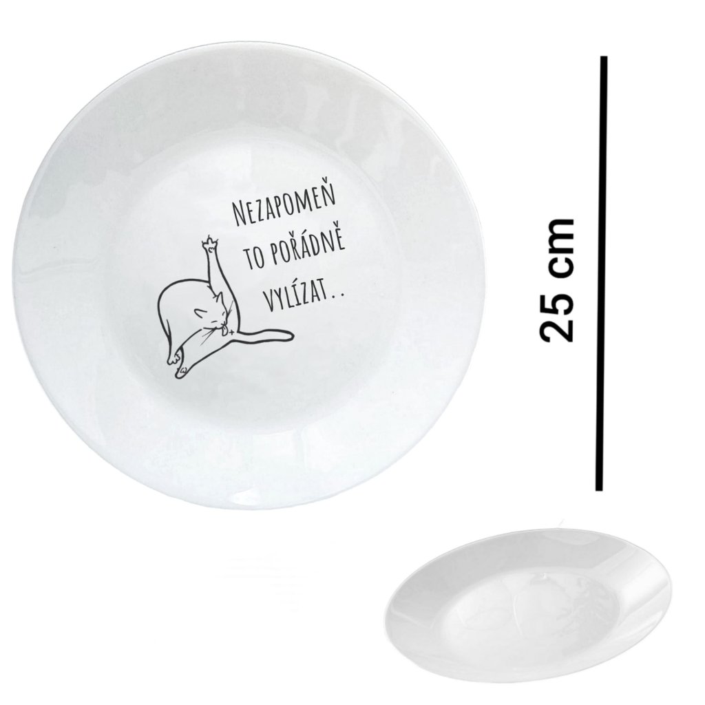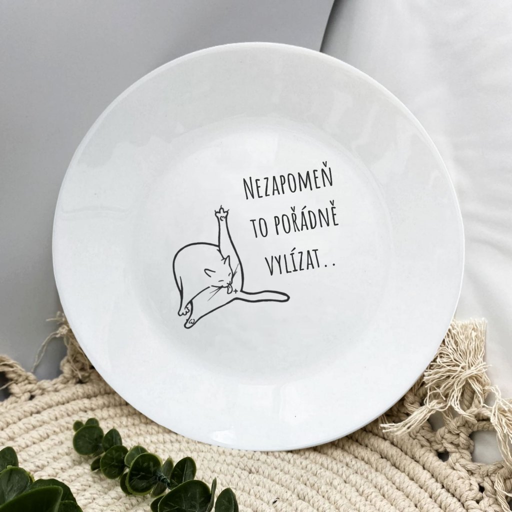 Tento vtipný talíř s potiskem je ideální způsob, jak ozvláštnit každé jídlo. Kočka v dost nekompromisní poloze a nápis „Nezapomeň to pořádně vylízat..“ se postarají o to, že u stolu bude veselo.