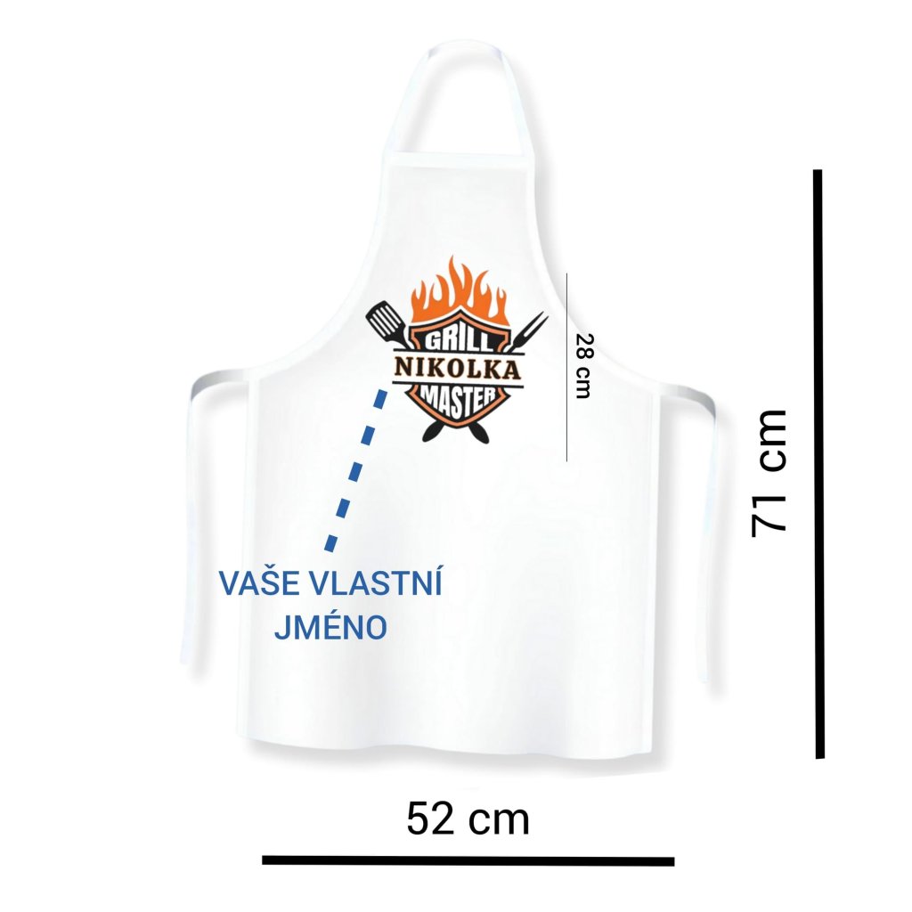 Zástěra GRILL MASTER s vlastním jménem je pro každého, kdo umí obracet maso tak, že všichni kolem čučí úžasem.