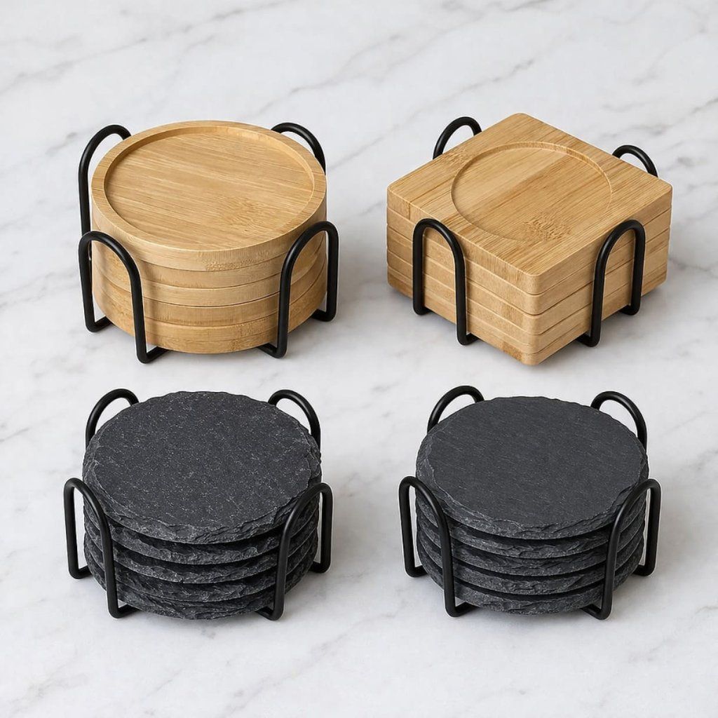 - ✓ Vhodný pro: Kulaté podtácky, hranaté, bambusové, břidlicové, dřevěné, korkové (o max. průměru 10 cm)