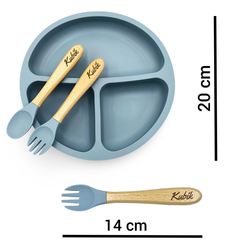 V ceně vidlička, lžička a jídelní nádobka s přísavkama k připevnění ke stolu.