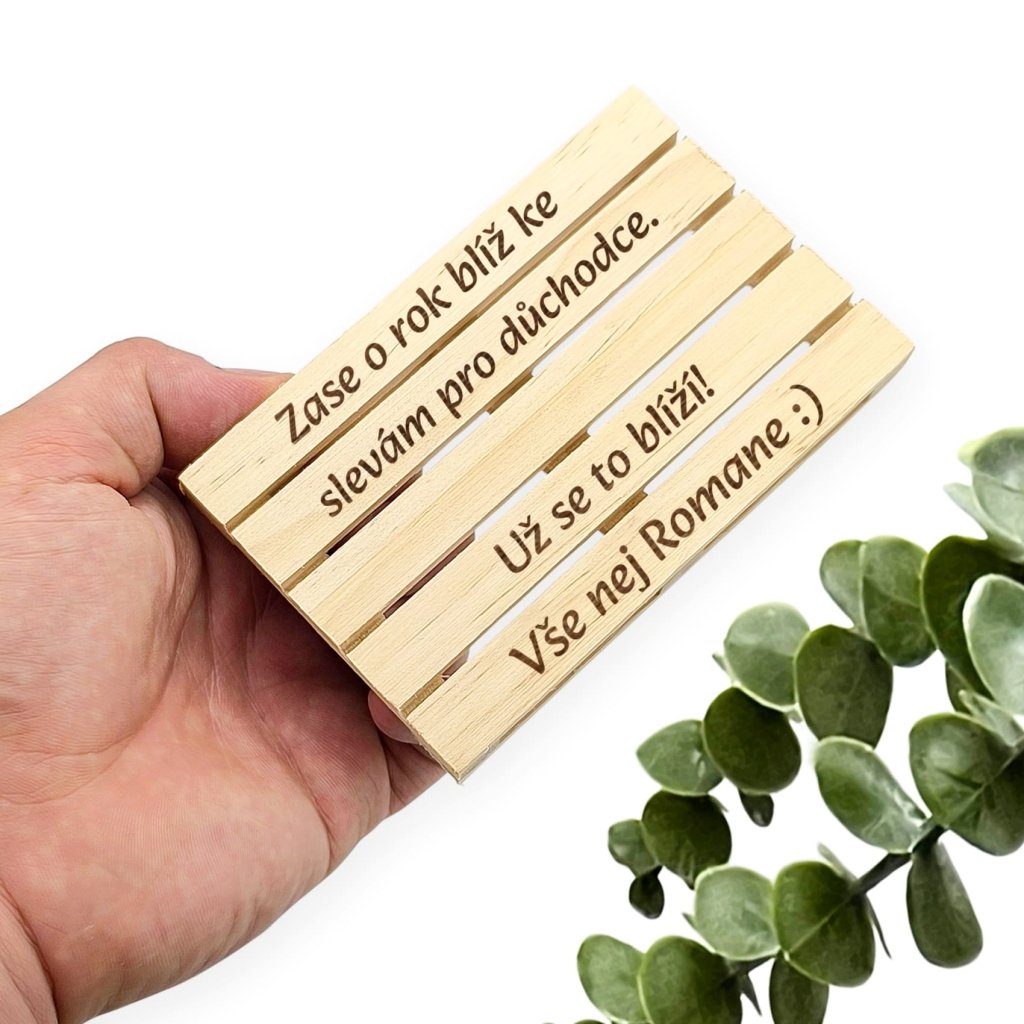 Tenhle dřevěný podtácek ve stylu europalety je jako stvořený pro kávu, čaj, pivko...a nejlepší na tom je, že si můžete na něj vyrýt vlastní text - vtip, přání, jméno, osobní věnování nebo třeba hlášku, kterou dotyčný jen tak nezapomene.
