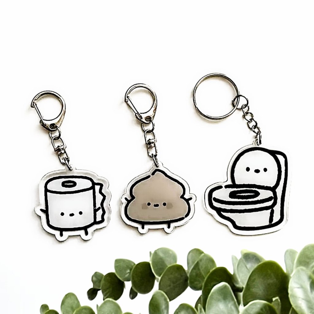 Hledáte dárek, který je stejně ujetý jako Vaši kámoši? Tohle je ono. Sada tří klíčenek – záchod, toaleťák a legendární hnědý emotikon – je ideální pro nerozlučnou trojici, která se nebojí srandy, trapasů ani toaletního humoru.