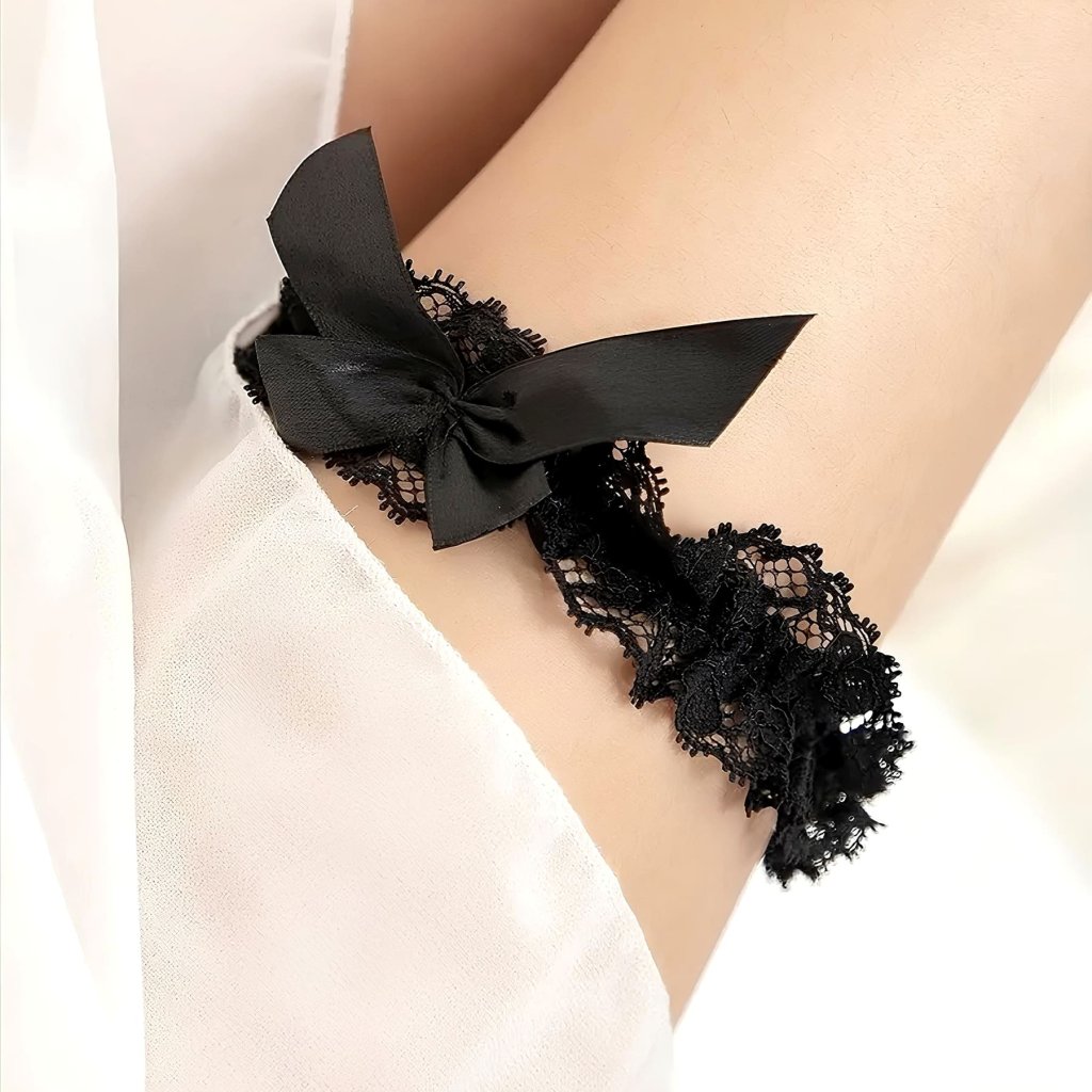 Elegantní černý podvazek s jemnou krajkou a saténovou mašlí – decentní na pohled, ale s jasným vzkazem pro okolí: "nebojím se stylu"