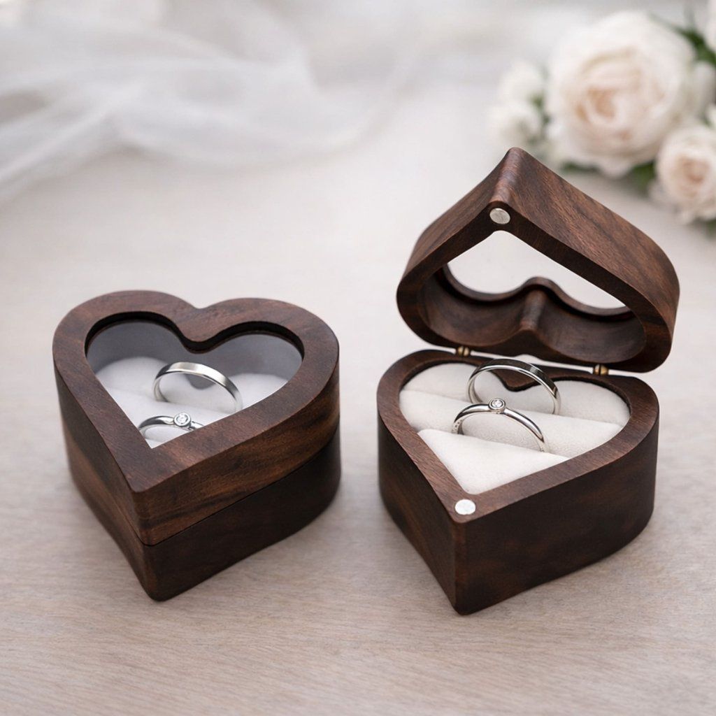 Elegantní svatební krabička na prsteny ve tvaru srdce je dokonalým doplňkem pro váš velký den.